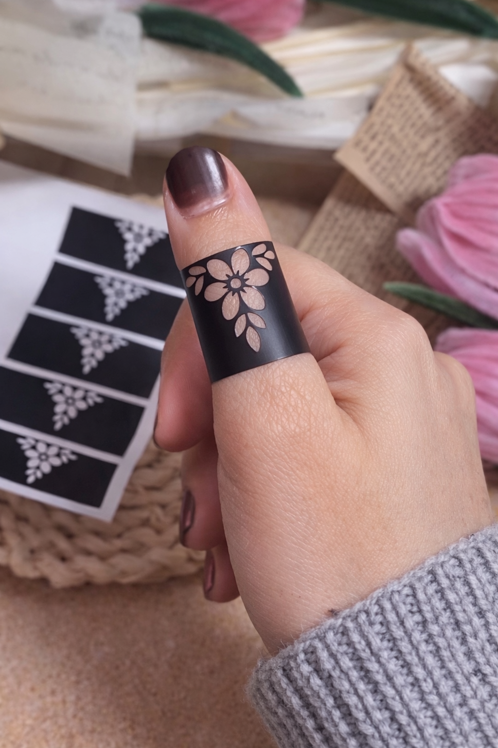 حنة الأصابع مع الاستيكرات – لمسة أنوثة سريعة وأنيقة