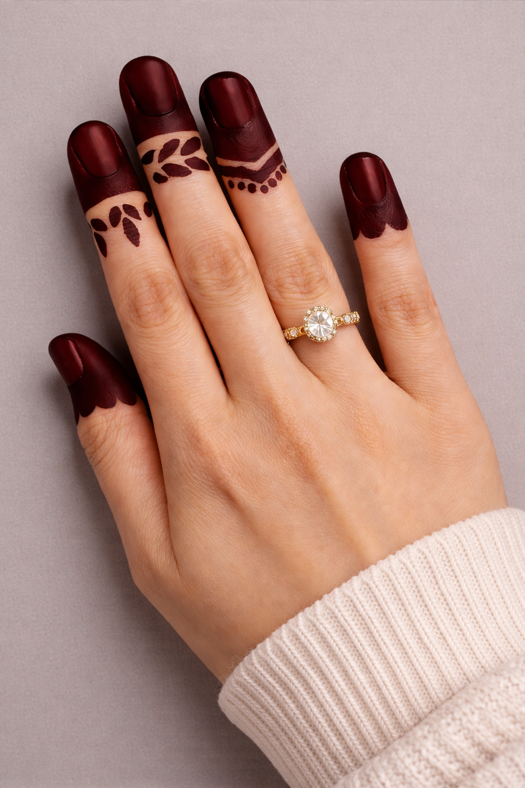 حنة الأصابع من Maryoma Gold Beauty مصممة لتعطيك لمسة جمالية مرتبة بدون الحاجة لنقش كامل أو جلسة طويلة.
