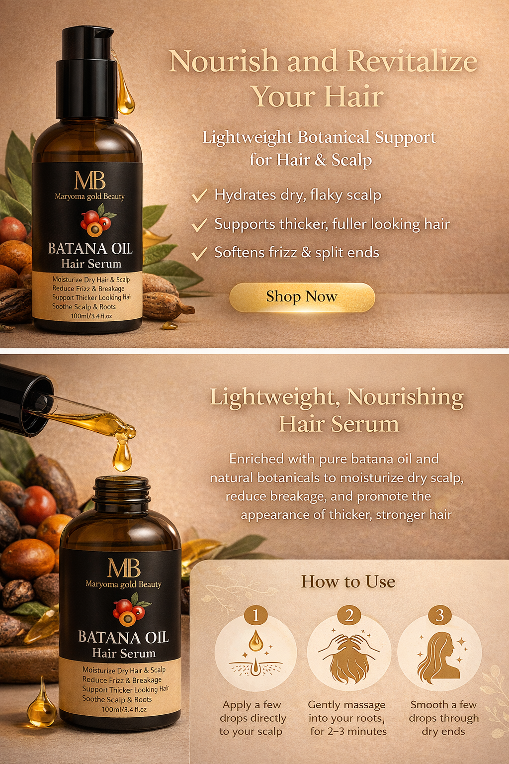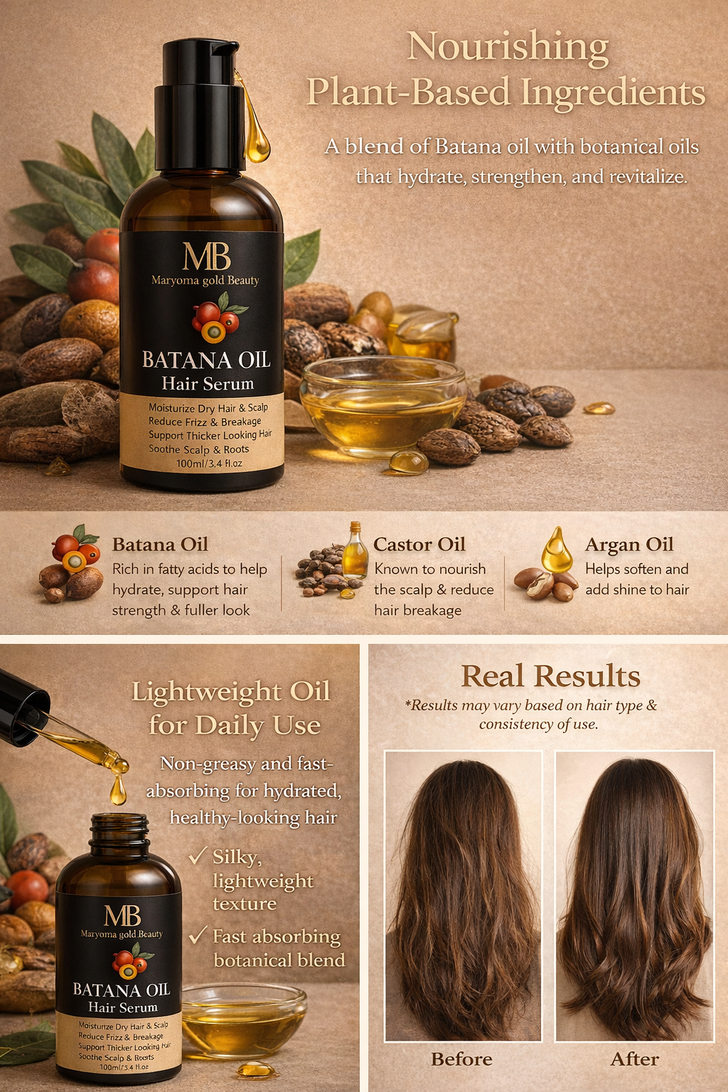 سيروم غني بزيت الباتانا مصمم لدعم صحة فروة الرأس وترطيب الشعر الجاف دون إثقاله.